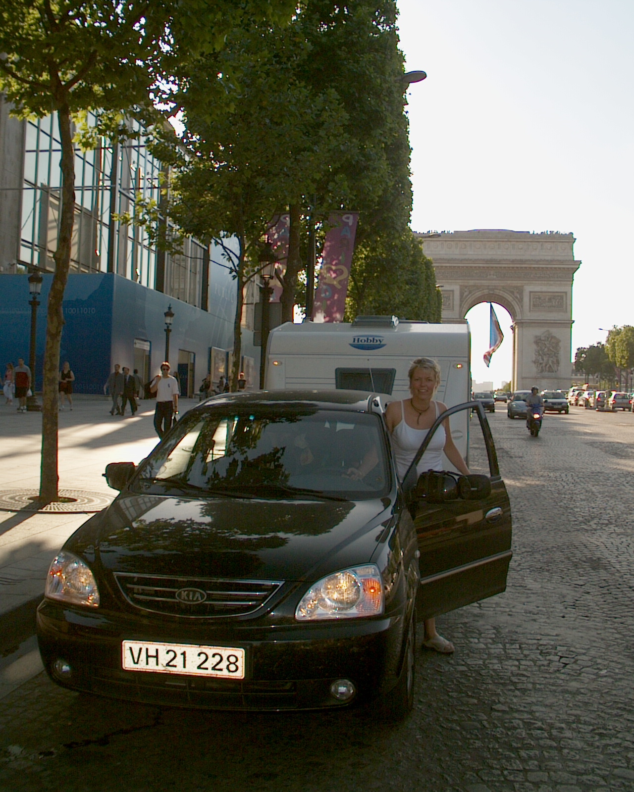 Vi kjørte i en Kia Carens CRDI 2,0 diesel, som trakk aldeles utmerket. Campingvognen var en Hobby Excellent Easy UFe med dobbeltseng, kjøkken, badeværelse og sittegruppe. Dieselforbruk med 1200 kg tung campingvogn: Motorvei 9,5 km/l. Blandet kjøring 8,2 km/l. Fjelletappene 5,1 km/l. I Her skal tillegges at vår aircondition gikk kontinuerlig, fordi vi hadde så fint vær, og den sluker mye. Les mer om Kia på www.kia.no
