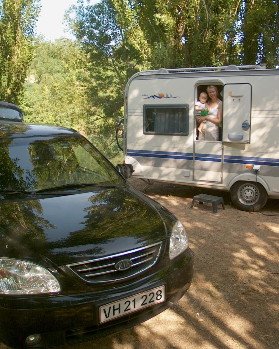 Vi kjørte i en Kia Carens CRDI 2,0 diesel, som trakk veldig bra. Kias hjemmeside: www.kia.no Se dieselforbruk under faktaopplysninger. Campingvognen var en Hobby Excellent Easy UFe med dobbeltseng, kjøkken, badeværelse og sittegruppe. Solseil fra Isabella. Les mer her www.isabella.net Sykkelen er av merket Mosquito XPlicit. Les mer på www.mosquito.dk