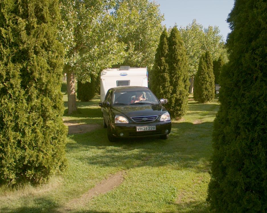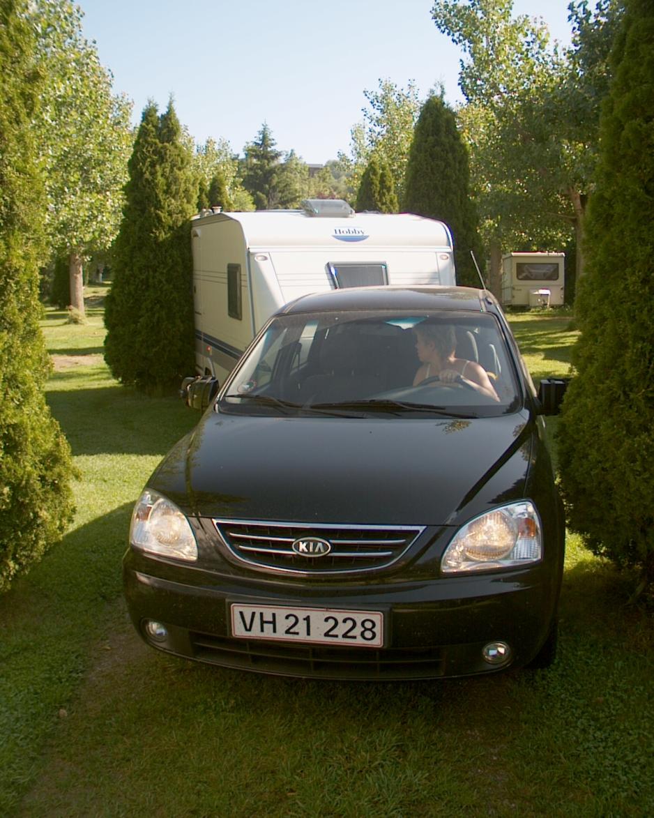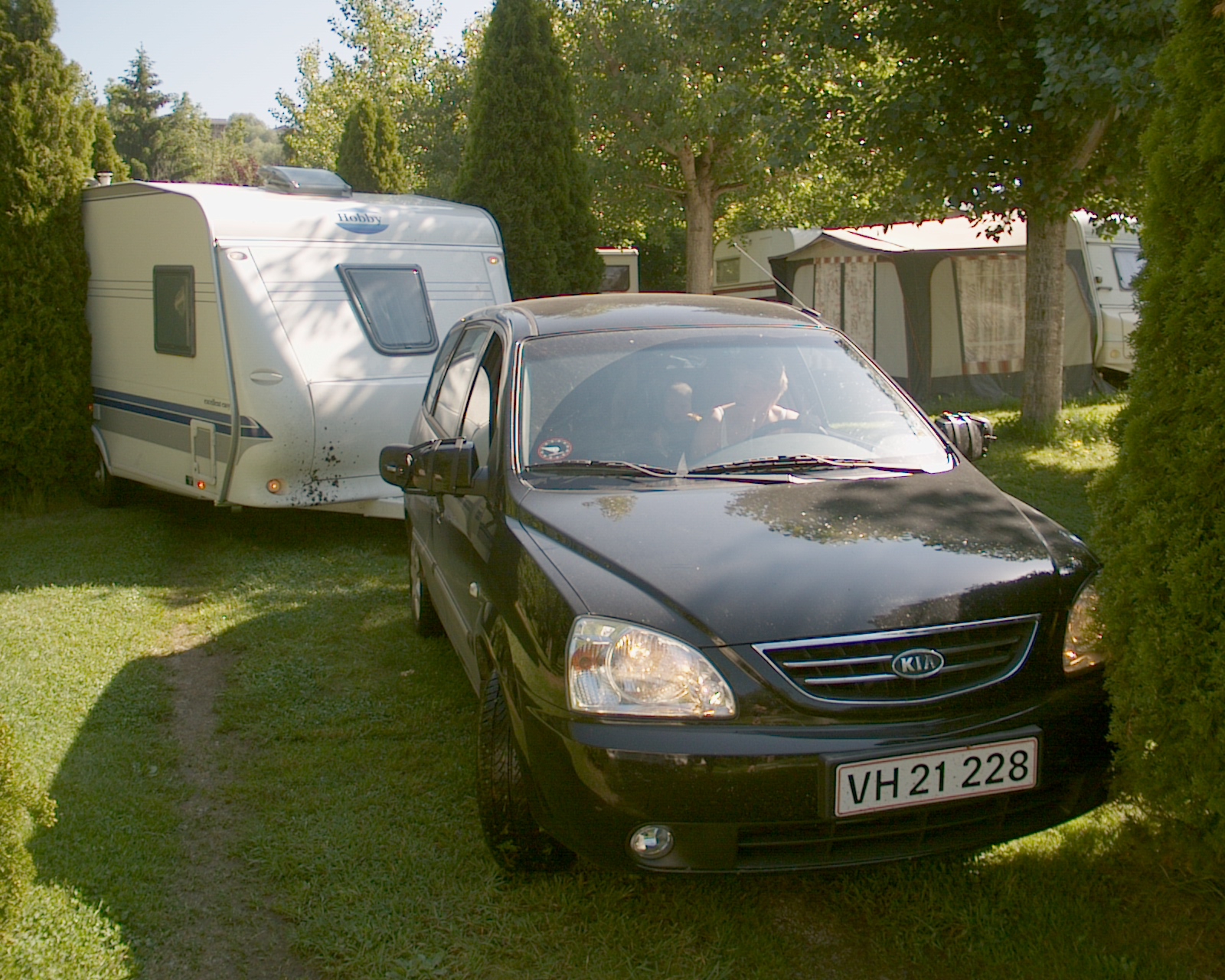 Vi kjørte i en Kia Carens CRDI 2,0 diesel, som trakk veldig bra. Kias hjemmeside: www.kia.no Se dieselforbruk under faktaopplysninger. Campingvognen var en Hobby Excellent Easy UFe med dobbeltseng, kjøkken, badeværelse og sittegruppe. Solseil fra Isabella. Les mer her www.isabella.net Sykkelen er av merket Mosquito XPlicit. Les mer på www.mosquito.dk