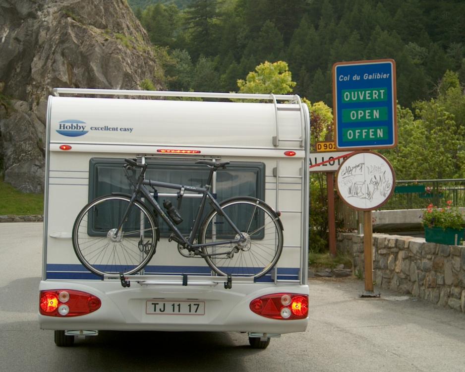 I St. Michel de Maurienne finner vi veien til en av de andre klassikerene på Tour de France, nemlig fjellene Col du Télégraphe 1.566 moh og Col du Galibier 2.646, som for øvrig er det høyest beliggende pass på hele Tour de France. Høyden er som sådan ikke noe problem, hvis ellers veien ikke er for bratt til å komme opp. Et skilt viser oss, at tunnelen under Col du Galibier er åpen - også for campingvogner, hvis vi vurderer, at vi ikke kan kjøre over passet.