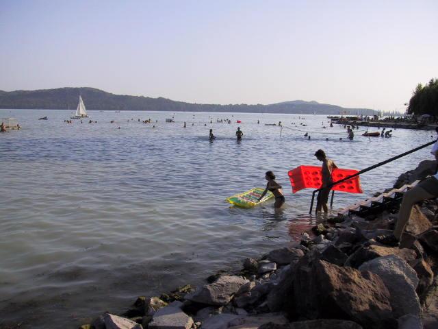 Det er over middag og det er veldig varmt i bobilen. Alle vinduer er oppe, men vi sitter bare stille og svetter. Det blir deilig å komme frem til Balatonsjøen og ta en rask dukkert. Den første campingplass som vi skal bo på, ligger i Balatonfüred på sjøens nordside. Campingplassen er enorm og forholdene er helt i topp. Vi blir betjent av en søt ung jente, som på velformuleret tysk ønsker oss velkommen og forteller om plassens - og områdets muligheter. Vi sjekker inn for to dager og så er det på tide å komme i vannet.