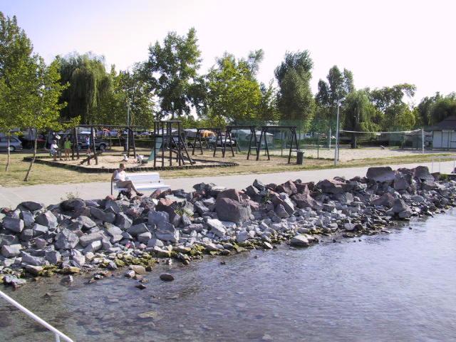 Campingplassen ligger like ned til vannet, og har alt hva du i prinsippet skal bruke på en ferie. Det er lekeplasser, svømmebasseng, aktivitetsområder, butikk, boder og best av alt en hel restaurantgate, hvor du for meget rimelige priser kan få slukke sulten etter magens helt individuelle ønsker. F.eks. koster en wienerschnitzel med poteter og saus omkring 35 kr. Som hovedrett bestiller vi gryterett, som en en en kraftig og fantastisk velsmakende gullasch. Desserten blir en liten beskjeden kaloriebombe ”gundel palacsinta”, som betår av tynne pannekaker flambert i Armagnac med varm sjokolade over. Det ungarske kjøkken har hentet sin inpirasjon over hele verden. Paprika er et av de viktigste ingredienser og de fås fra søte til ektremt ”hotte”. Maten tar både lang tid å tilberede, og spise for det er rikelig av den. Deilig.