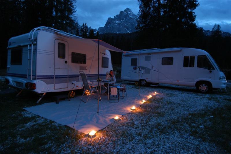 Vi stopper i 1.000 meters høyde og har sovet på en liten campingplass i nærheten av byen Belluno i Dolomittene. Da vi kom fram i går kveld hang skyene rett over hodene våres, men denne morgenen har de lettet igjen og solen skinner, så vi kan spise frokost utenfor vognene våre. Vi har alle sovet utrolig godt med vinduene åpne og direkte tilgang til den friske luften. Jo man sover godt i fjellene. I dag skal vi kjøre til siste stopp på den lange reisen. Sexten – få kilometer fra grensen til Østerrike. Det blir en flott tur.