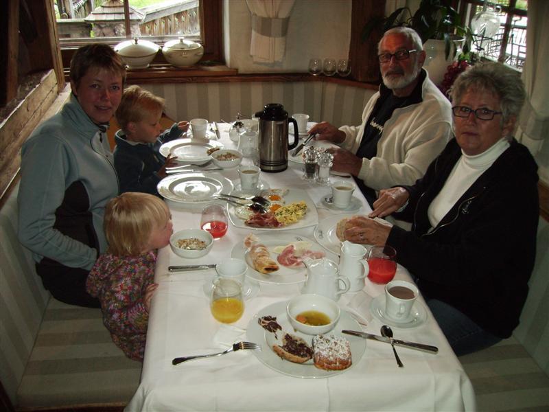 Vi ankommer sent og finner raskt plassene våre – side om side. Barna sover allerede i bilen, så de bæres inn i seng. Vi nyter ”en lille en” i Britta og Oles bobil, før vi selv kryper til køys. Vi står opp til en ny flott dag, som er den siste på hele vår lange reise, som startet for ca. tre uker siden. Vi har vært rundt ”hele” Italia og det har vært fantastisk. Så i dag skal reisen avsluttes med stil. Vi er på en av Europas beste campingplasser, der det er en eksklusiv restaurant. Her inntar vi dagens første måltid. Et frokostbord med alt, hva man kan tenke seg. Vi nyter alt sammen og går med velfyllte mager fra bordet.