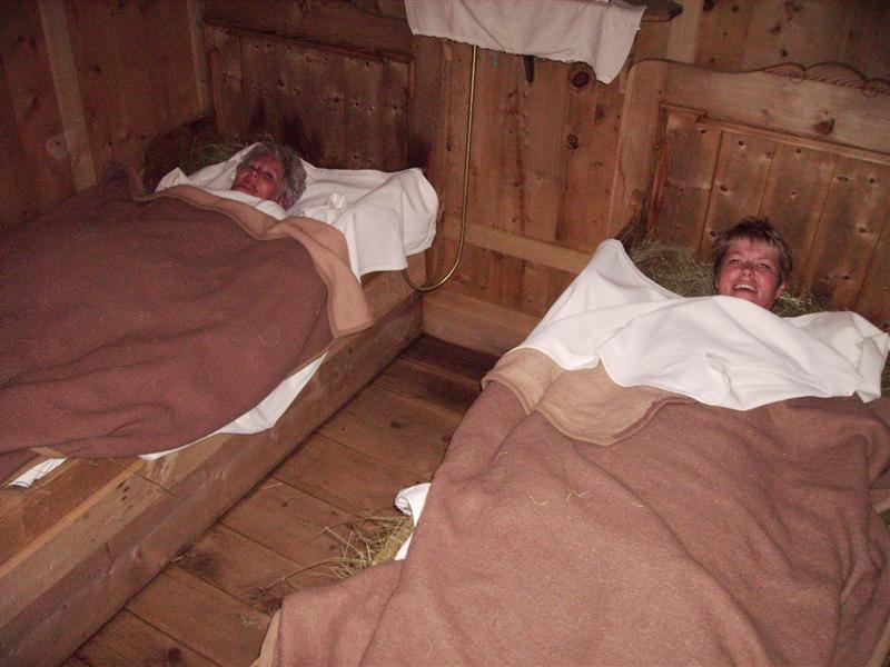 Vel tilbake på campingplassen er det blitt tid for en liten ettermiddagslur for barna. Rasmus og Ole hygger seg med et glass vin foran ekvipasjen vår. Britta og jeg skal på jentetur til campingplassens wellness center. Vi skal simpelthen pleies med massasje og ansiktsbehandling. Når vi trer inn i lokalet blir vi litt overrasket over det, som møter oss. Du store verden, hvor det er flott og gjennomført. Campingplassen ligger flott, restauranten er hyggelig og har klasse. Fasilitetsbygningene er nesten overdrevent luksuriøse og så kommer vi inn i denne harmoniske verden av velvære. Vi starter med å bli varmet opp i et deilig vannbad med urter. Deretter massasje og ansiktsbehandling. Det hele tar 3 timer. Selvfølgelig koster det, men det er verdt hver krone.
