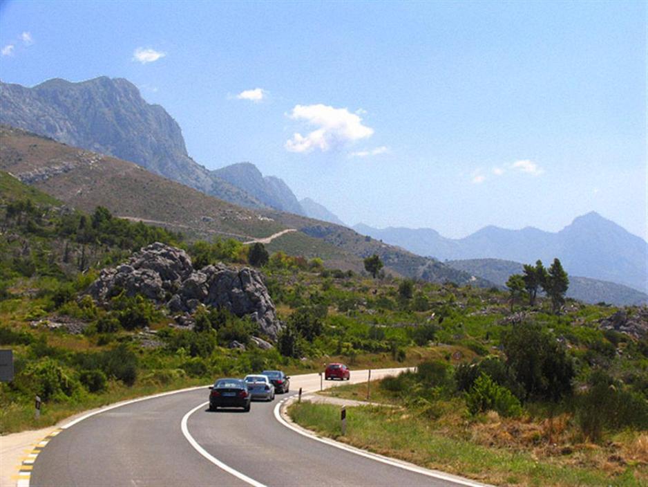 E65 i Kroatia langs kysten er ganske smal her og en relativ høy fjellkjede adskiller landet fra Bosnia Herzegovina (BiH) rett bak fjellene. Det går så godt som ingen veier over dem. Utenfor kysten ligger der en rekke øyer, bl.a. de kjente Hvar og Brac. Man kan virkelig nyte denne delen av kjøreturen, der man har fjellene på den ene siden og utsikten over havet på den andre siden. Veien (hovedvei 8) er i god stand og det er ingen stigningsmessige utfordringer og alle svinger er oversiktlige og godt avmerket.