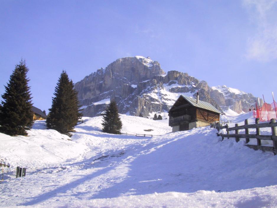 Mottoet i Dolomittenes flotte by er at man ikke kan ha stått på ski i Canazei uten å ha kjørt de ca. 40 km inkl. lift, som er hele veien rundt det fascinerende Stella-massiv. Det spiller ingen rolle om du kjører med eller mot klokken, men start tidlig om morgenen, så du får tid til å nyte de landskap du passerer, og ikke minst besøke de små hytter, som ligger i terrenget. Vi tar hele turen rundt på Telemark, noe som i seg selv er litt av en kraftanstrengelse. Telemark er ikke noe italienerne ser særlig ofte, så vi fikk mange optimistiske tilrop i løpet av dagen. Italienerne er selv mer opptatt av slalåm og pastellfargede heldrakter. De står helst ikke på ski hvis det er dårlig vær, og med dårlig vær mener de lett skyet eller lite grann vind. Blå, blå himmel er det som må til før italienerne synes det er ordentlig vær for skiturer.