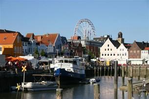Ute i myrområdet omgitt av diker ligger Husum, som i tidligere tider var kjent for sine store kvegmarkeder. Byen har drøyt 25.000 innbyggere. I dag er byen spesielt kjent for sine reker og for dikteren Theodor Storm. Byen har en sjarmerende bykjerne, en deilig slottspark med millioner av krokusser og en liten havn. Ikke langt borte finner man dikene som beskytter byen mot Vesterhavet. Først ved storflommen i 1362, da den viktige handelsplassen Rungholt ble ødelagt, fikk Husum adgang til Vesterhavet og ble havneby. I byens sentrum ligger Vår Frues kirke bygget i gule teglstein i perioden fra 1827-32. Den ble oppført av den danske statsbyggmesteren Christian Frederik Hansen, hvis foreldre kom fra Husum. Den minner litt om Vår Frues Kirke i København, som også er bygd av Christian Frederik Hansen. Kirken er en av de mest betydningsfulle klassisistiske bygningene i Nord-Europa. På torget foran kirken står Tine-brønnen, byens kjennetegn fra 1902. Pikeskikkelsen skal minne om Catharina Asmussen, en av byens mest betydningsfulle filantroper, som sammen med slektningene fra Woldsen-familien hadde opprettet en stiftelse for eldre og syke mennesker.