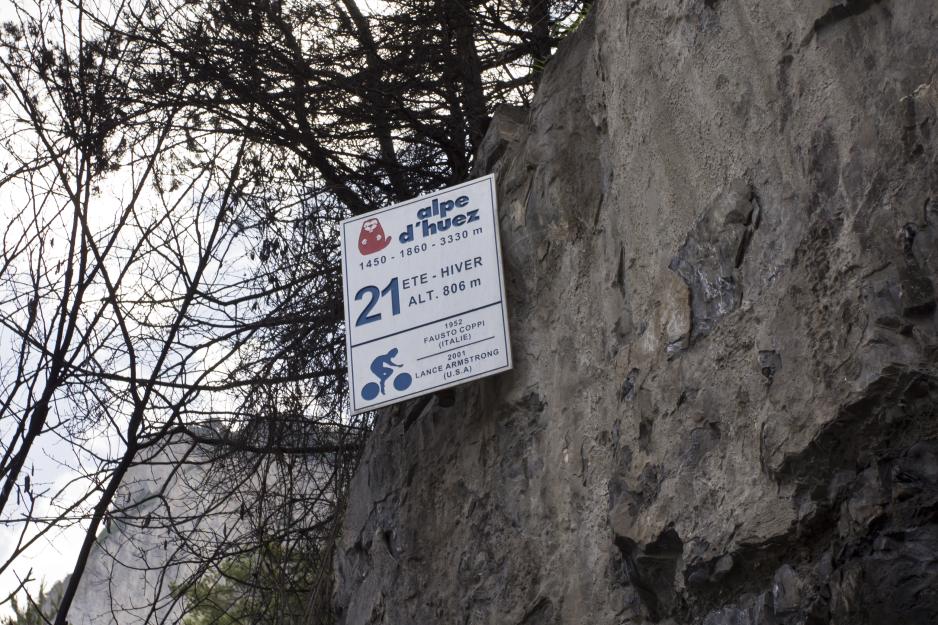 Ved foten av fjellet et par kilometer fra Bourg d´Oisans står et lite skilt og det er her den offisielle tidtakingen begynner. Herfra er det bare ca. 14 km til mål, og hvilke 14 km! Det er stigninger på opp mot 12 prosent. Tidsrekorden er fra 1995, da den italienske fjellrytteren Marco Pantani kjørte opp på 36 min. og 50 sek. – vel og merke etter 162 km over tre andre fjell utenfor kategoriene. Utrolig.