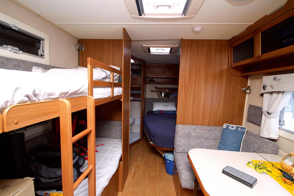 Kabes romslige Royal 780 BGXL har god plass, og med barna i egen vogn kan køyesengen benyttes som lagerplass. Foto: Frank Skaufel