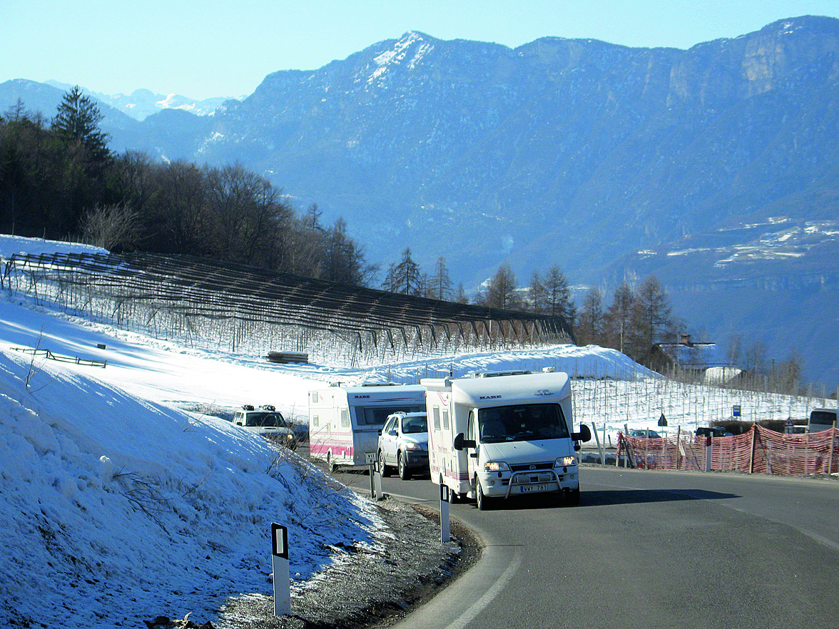 Været er uansett som det er, sett av god tid til reisen og kjør inn til siden og lag en kopp kaffe hvis uværet skulle slå til. Her er det en kjempefordel med å ha sitt eget ”hus” med på kroken. Når campingplassen ligger høyt kan det være vanskelig å kjøre campingvognen de siste kilometerne til selve campingplassen – om den ligger i terrenget. Men mange campingplasser tilbyr å kjøre campingvognen på plass, oftest med en traktor, det siste stykket. Still vognen på en parkeringsplass i byen, for eksempel ved et kjøpesenter hvor det er god plass og få noen fra campingplassen til å hente vognen for deg. Eller så kan du bestille denne tjenesten hjemmefra, det er som regel gratis!