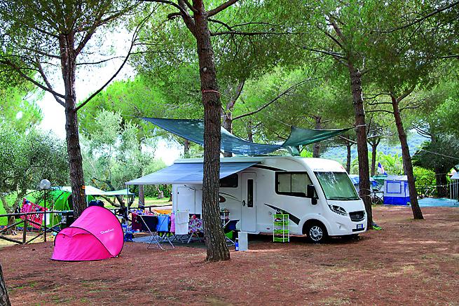 Plasseringen gir naturlig le for vinden, og området har godt med trær som gir behagelig skygge - også på plassene for vogner og bobiler. Det er lite trafikk i området da veien som går forbi kun går til Talamone, og så er det full stopp. Campingplassen har en egen strand som ligger inntil Talamone Wind Beach. Denne er kun for campingplassens gjester, og er en kunstig oppbygget plass hvor det er svært langgrunt. Flott for barn, men vi vil heller anbefale å ta turen til badeplassen i selve Talamone, som er innen rekkevidde til fots. Skal du bade i italienske svømmebasseng må du nesten uten unntak bruke badehette. Greit å vite når du pakker til turen. Ønsker du deg en enklere og rimeligere plass å stå i dette flotte området, så er Talamano Wind Beach et alternativ.