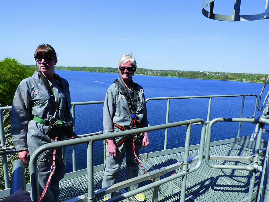 Vel nede på bakken fikk vi vite at brovandringen over Lillebælt har blitt en formidabel suksess. Vi gjennomførte turen i fjor våres, nesten på dagen et år etter at attraksjonen ble åpnet for publikum. I løpet av det første året har rundt 45 000 besøkende blitt med på turen over gitterverksbroen. Her har det også vært bryllup, og tilbudet har høstet mye anerkjennelse.