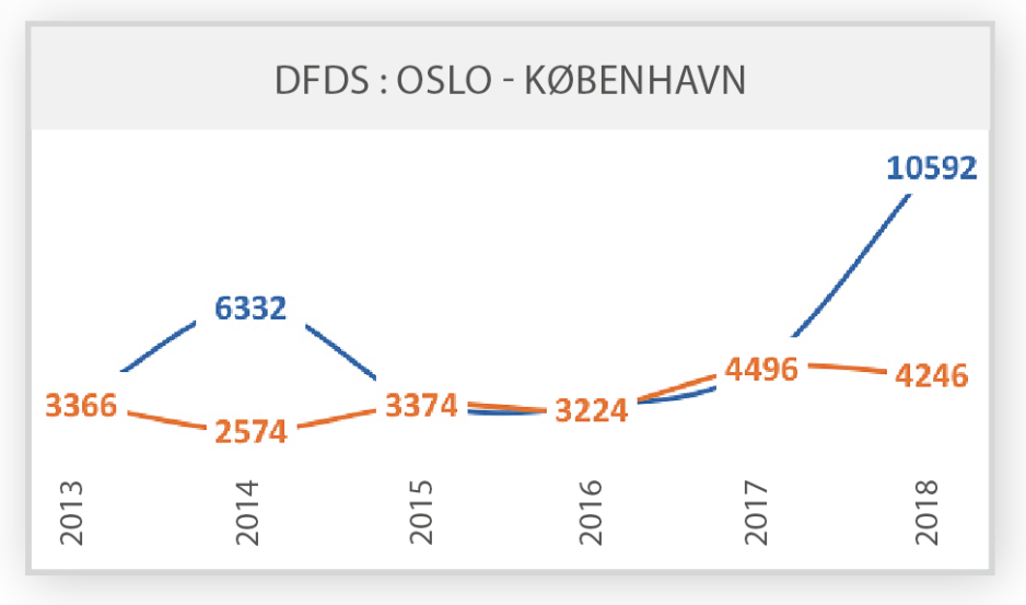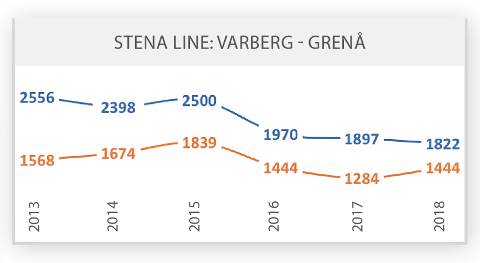 Priseksempel 2 (Helsingborg-Helsingør og Gedser-Rostock): 5190 SEK (2017: 4630 SEK, 2016: 4310 SEK, 2015: 4290 SEK)