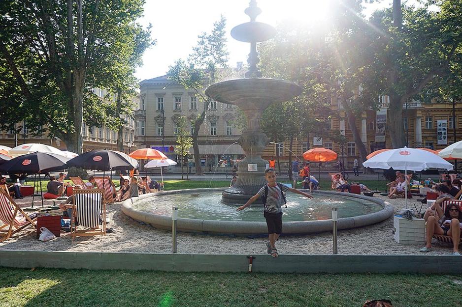 Zagreb er delt i to: Øvre og nedre bydel. Den nedre bydelen ligger rundt en park som ligger midt i hovedgata. Zrinjevac, som parken heter, bidrar til byens avslappede atmosfære. Her er det til enhver tid mulighet for å sette seg i gresset og spise en is. Vi tilbrakte mye av vår tid i Zagreb med å gjøre akkurat dette. Her var det folk og musikk, og god stemning. Den helgen vi var i byen var parken base for en festival, og det gjorde ikke stemningen noe dårligere!