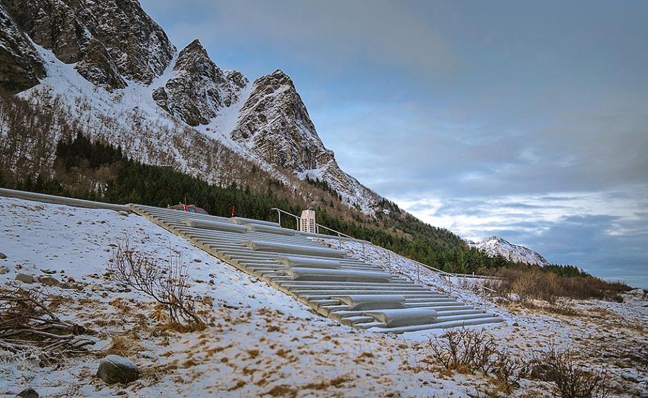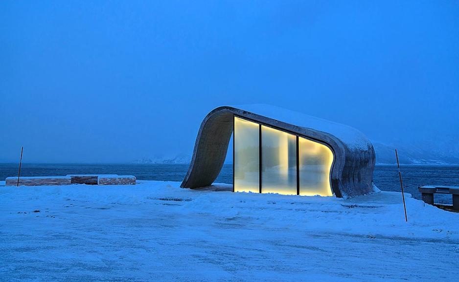 Det er den britiske avisen The Telegraph som har latt seg imponere og sier at dette sannsynligvis er verdens mest idylliske toalett. Den bølgeformede bygningen med utsikt over Norskehavet og de snødekte fjellene i Lofoten har bokstavelig talt bergtatt engelskmennene.