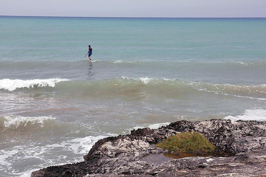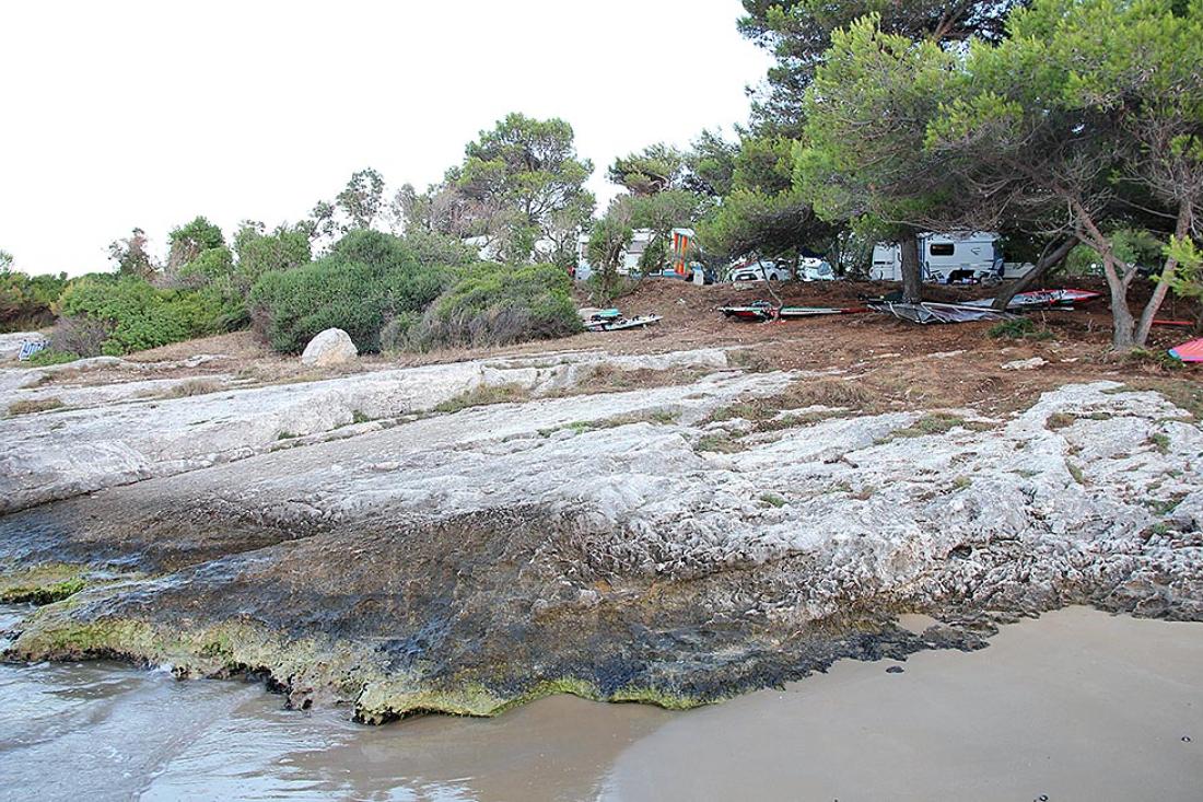 Dette er en camping hvor arealet er godt utnyttet, for å si det mildt. Plassen vi får tildelt er liten, men hva gjør vel det når vi får rigget oss til med utsikt og havet bare 50 meter unna? Været viser seg i tillegg fra sin beste side. Dette er et stabilt solrikt område, og havet ligger flatt. Neste dag kommer det likevel et kraftig regnskyll. Det varer ikke så lenge, men vannet setter dype spor etter seg. Havet fylles raskt opp med surfere og andre som leker seg i bølgene.