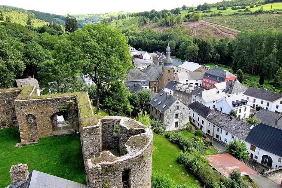 Typisk landskap nord i Ardennene, små byer, kulturlandskap og borgruiner.
