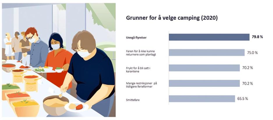 I følge den europeiske undersøkelsen var det fem hovedårsaker til ikke å ta den forrige typen ferie og for å bytte til en campingvogntur: 80% ønsket ikke å reise med fly på grunn av coronavirus, 75% var bekymret for at de ikke ville kunne returnere som planlagt. Andre viktige faktorer var frykten for å måtte gå i karantene, de koronavirusrelaterte kravene som ville påvirke den forrige formen for ferie (70% i hvert tilfelle) og smittefaren (66%).