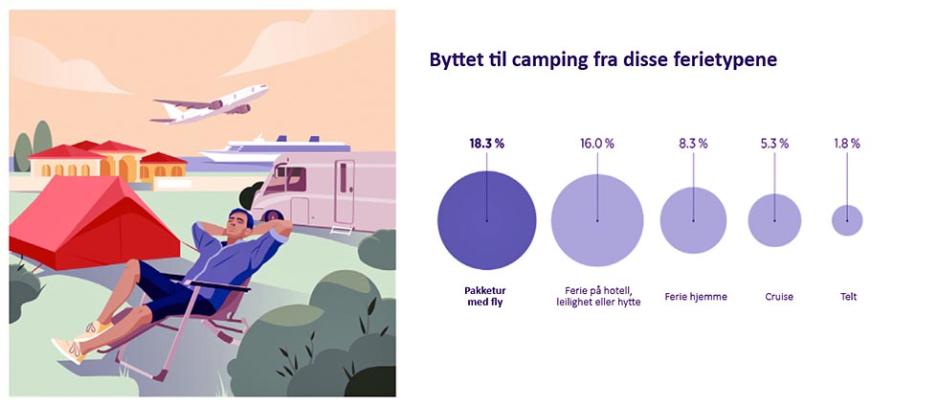 - i 2019 hadde 18% av årets campingvognsreisende booket en pakketur med fly og 16% hadde bestilt et opphold i en leilighet, hytte eller hotell.