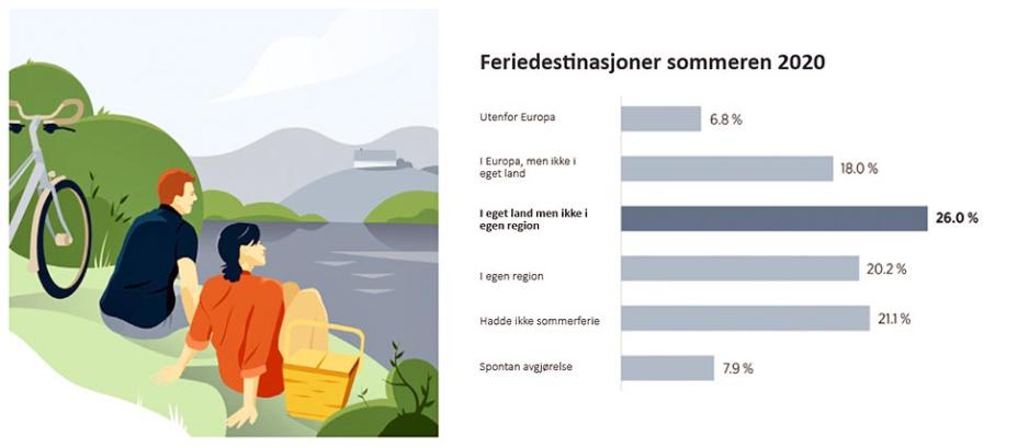 - 50% tilbrakte sommerferien 2020 hjemme - en økning på 70% fra året før.