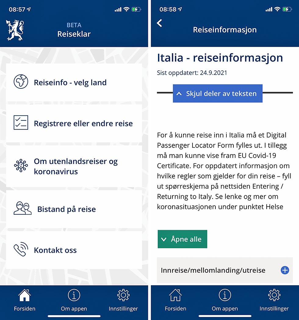 Samtidig som regjeringen varslet at de opphever det globale reiserådet lanserer Utenriksdepartementet sin nye app «Reiseklar». Denne skal hjelpe nordmenn med å raskt finne relevant informasjon før reise. Og å valgfritt kunne registrere reisen og få varsling mens du er på tur.
