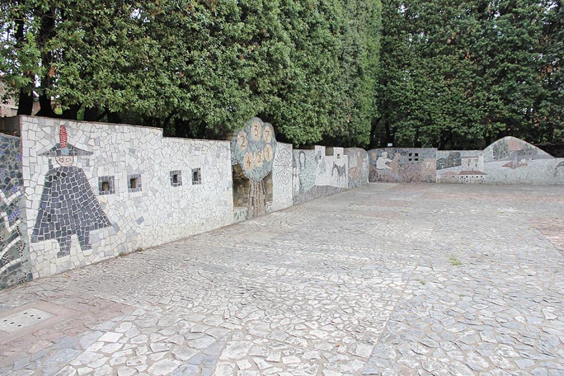 Det er lite folk i kø denne onsdagen i slutten av juli. Vi synes også det er påfallende få mennesker på innsiden. Det fant vi ut etter å ha betalt 25 euro for voksne og 22 euro for barn. Man kan også få en familiepakke på 60 euro. Prisnivået er vel som man kan forvente. Det er flere ting man kan gjøre i parken: Her er såkalte vintage-karuseller, en historisk hage, en monumentpark, et interaktivt Pinocchiomuseum, to aktivitetsstier og dukketeater.