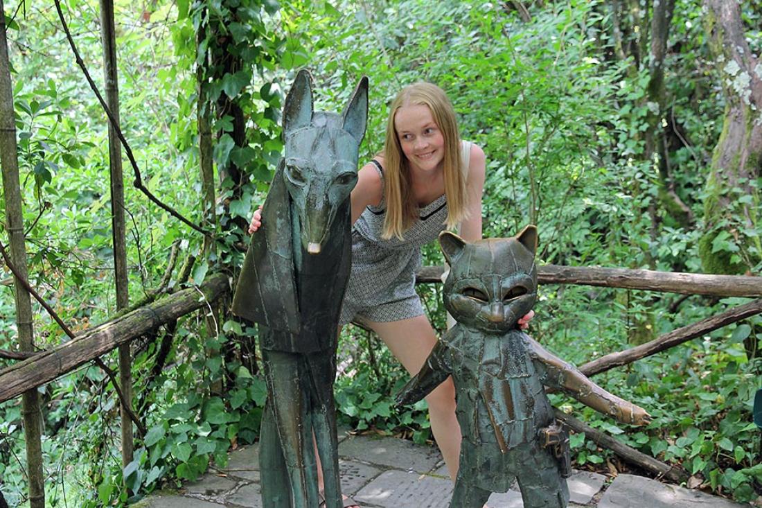 Vi begynte med en tur i parken, hvor piler viser vei og det er en blanding av aktiviteter og skulpturer. Hele området preger av å være frodig, og flere steder tenker jeg at her hadde det vært behov for litt stell av noen med grønne fingre. Vi var kanskje litt dårlig forberedt, og husket på forhånd få av de originale historiene om Pinocchio. Dermed var nok utbyttet av de ulike skulpturene og opplevelsene heller ikke helt optimale. En nyhet som har kommet til parken etter vårt besøk er imidlertid et interaktivt museum. Det er nok en god idé å besøke museet før man drar i selve parken.