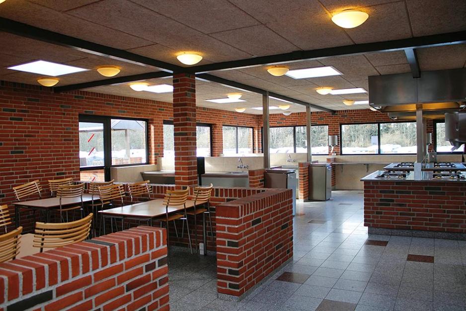 Foruten det imponerende badelandet, er det nyeste servicehuset noe Kurt er spesielt stolt av. Han tar oss med inn i det store felleskjøkkenet. Her er det alle muligheter takket være en mengde ovner og kjøkkenutstyr. Man kan velge å spise ute eller inne.