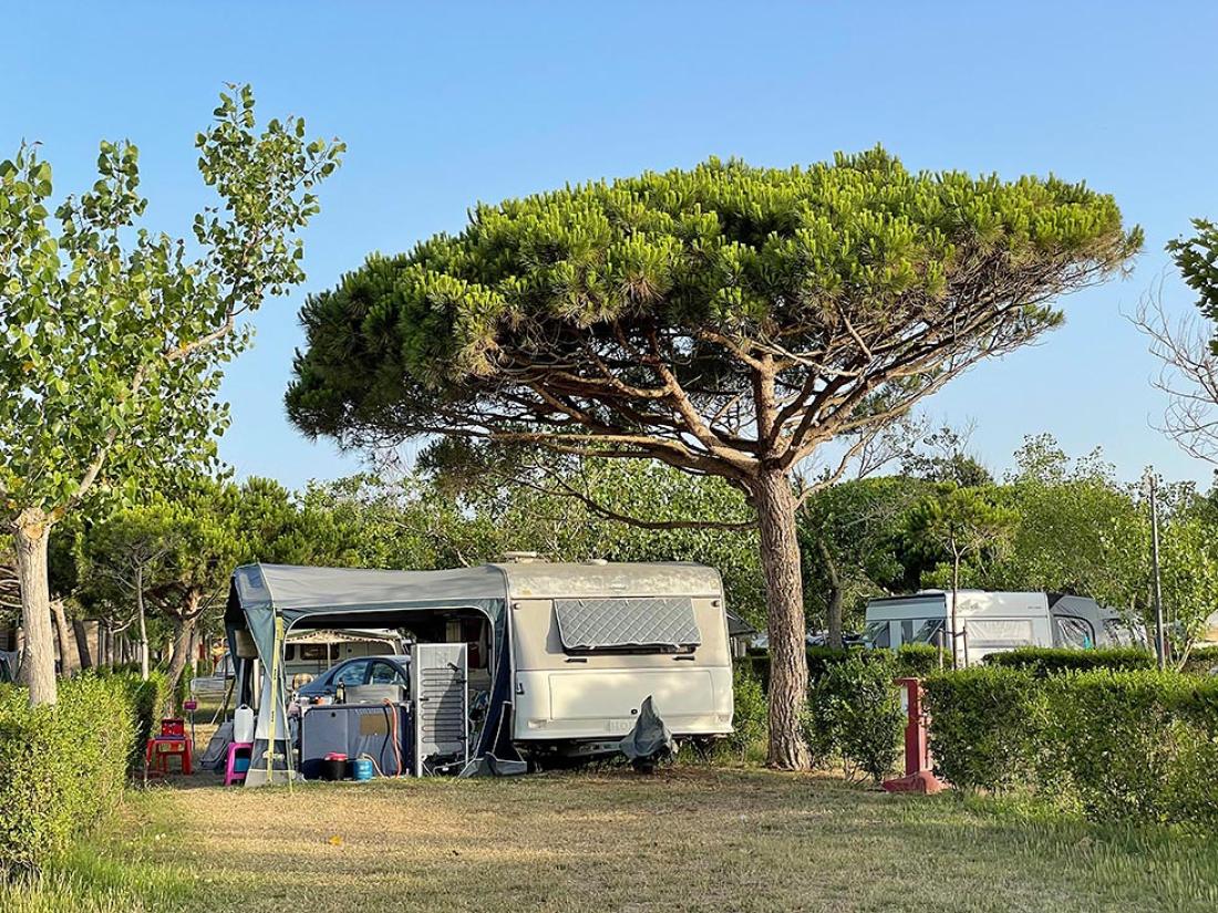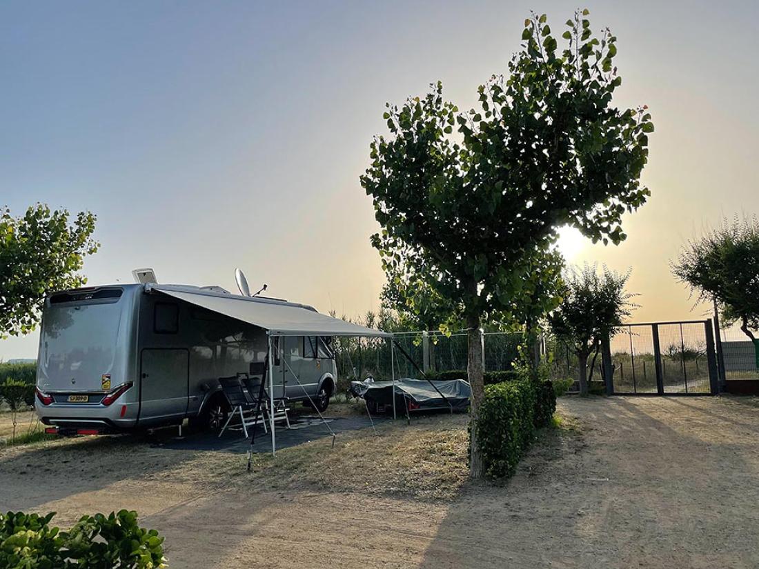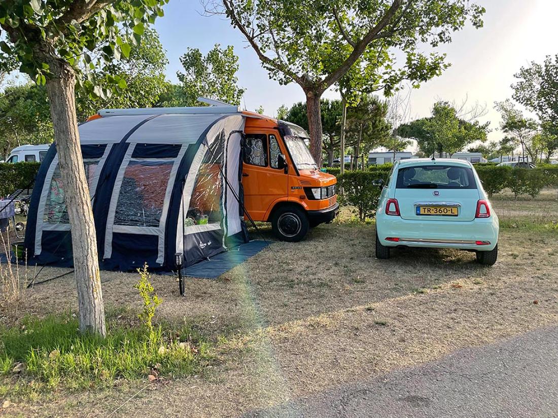 For jeg liker aller best å velge plass selv. Det meste av arealet til campingen er skyggefullt, takket være mange trær. Det er her de fleste har parkert, og jeg kan se at mange har rigget seg til for å bli her lenge. Vi kjører rett forbi. Vi skal bare bo her én natt og vil så nærme havet som mulig. Og det er bra med ledige plasser helt inntil stranden. Men, selv om vi kun er hundre meter unna, er det ikke mulig å se havet. Det er skjermet med et gjerde og en forhøyning i terrenget.