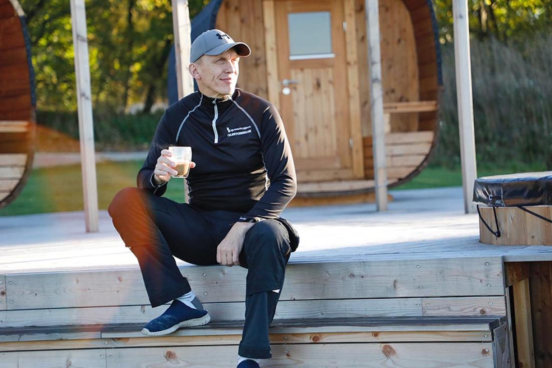 Vi treffer en blid og kaffedrikkende Ken Thøgersen. Han eier og driver Lindebjerggaarden og selskapet Hjemmebryggeren. Han blir ekstra blid når han hører vi kommer fra Norge, og viser oss rundt på hele eiendommen. Her er kreative utleiehytter, stor uteplass, utleierom, oppholdsrom og ikke minst et meget romslig butikklokale, som også brukes i kurssammenheng.