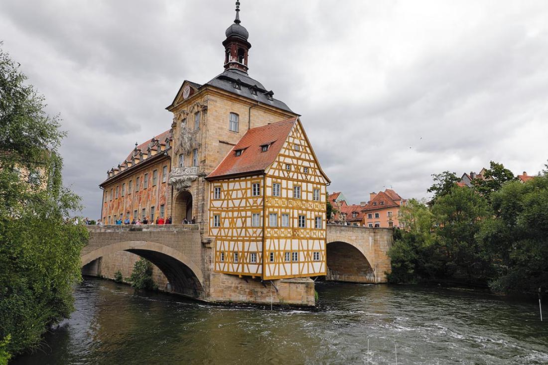 De 11 meter lange ekte venetianske gondolene føres langs Regnitz-elvens kanaler. Deler av elvebredden er smykket med pittoreske bindingsverkhus. Flere av de er så skjeve at det ser ut som om de kun holder seg oppe takket være nabohusene. Gondolene glir så sakte forbi det gamle rådhuset. Den imponerende bygningen er bygget på en liten kunstig øy midt i elven og tilgjengelig via flotte steinbroer. Bygningen er virkelig et spektakulært syn der den nærmest henger ut over elven. Legenden bak bygget er at biskopen av Bamberg ikke ville gi fra seg landområde til sine innbyggere så de kunne bygge seg et rådhus. Derfor ble utallige tømmerstokker brukt for å skape en kunstig øy i elven. Og her ble det bygget et rådhus i 1386.