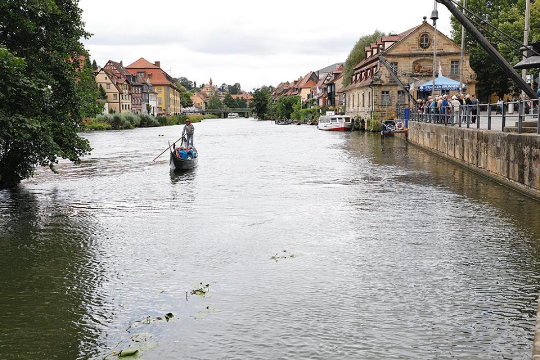 Regnitz er en elv som deler opp gamlebyen i Bamberg i Bayern. Noen kunne sikkert ristet oppgitt på hodet over hvor upraktisk det er med mange broer i et bysentrum. I stedet har byens innbyggere temmet elven ved å lage kanaler, og ikke minst skaffet seg et knippe gondoler.