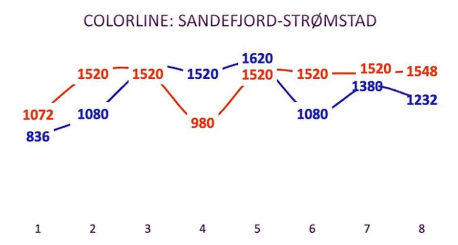 - Color Line med SuperSpeed2 har to daglige avganger i høysesongen. Her er overfartstiden