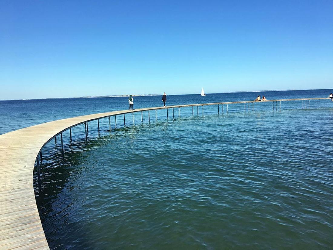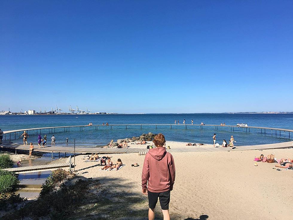 Tiden var kommet for å komme oss ut av byen. Etter kun noen minutter i bilen, møtte vi en helt annen type forvandlig. Fra urban bykjerne til fornem forstad. Og vakker bøkeskog. Vi var nå på vei for å finne Den uendelige bro. Dette er en badebro og et kunstverk som ligger rett utenfor sentrum. Den er helt enkel, helt rund og helt enkelt nydelig. Det var en varm sommerdag, så i tillegg til at vi fikk oppleve det vi kom for, hadde vi en fin dag på stranden hvor bryggen ligger.