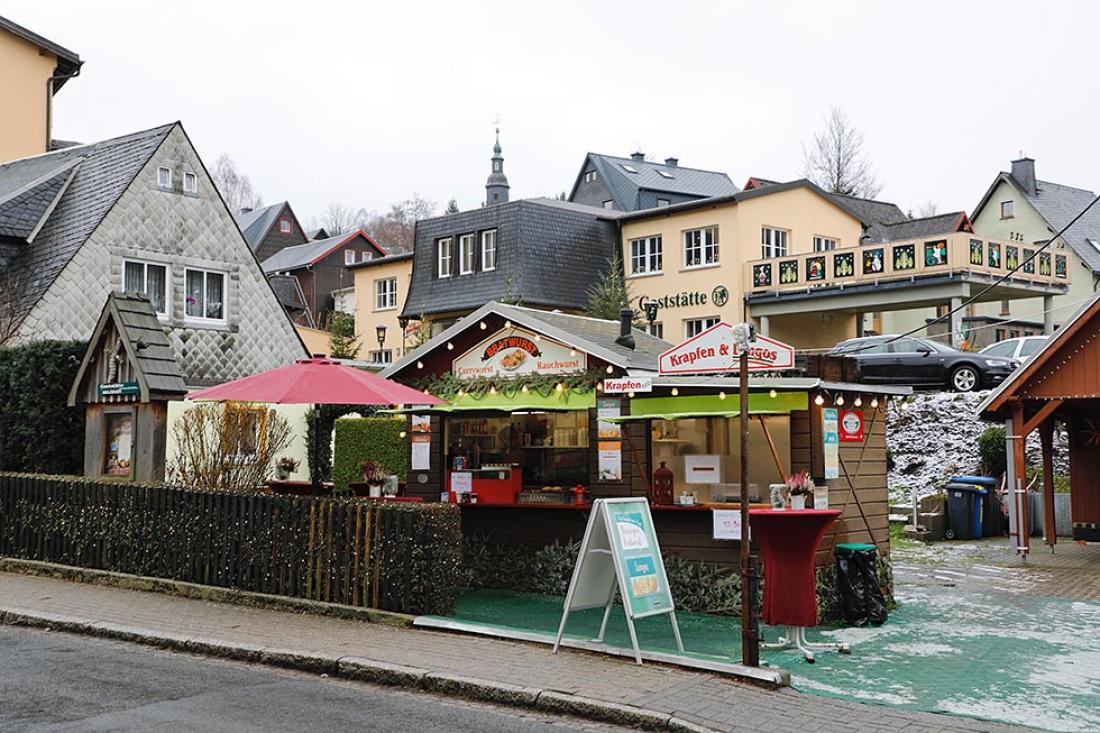 På torget fikk vi kjøpt oss bratwürst stekt på kull, og en varmende toddy. Foruten å sjekke ut byens butikker og boder, bør du innom det såkalte Adventshuset. Det er fullstappet med adventslys, kalendere, julekrybber, engler og alskens pynteting.