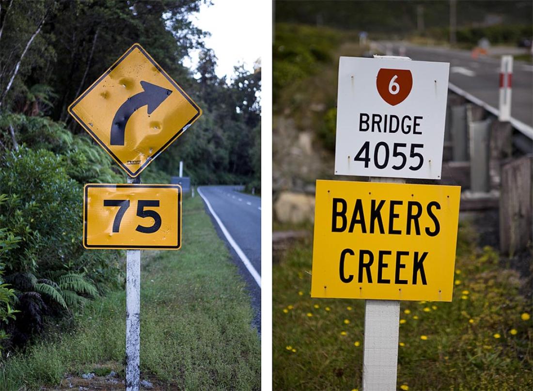 Selvfølgelig holder det ikke med tall for å holde kontroll på dem, neida, hver enkelt bro trenger et unikt navn. En idé som utvilsomt så dagens lys på et julebord i et litt vel lystig lag. Sommervikaren som fikk jobben om å navngi dem unner jeg alt godt, om han ikke allerede har havnet på psykiatrisk avdeling. Etter å ha oppkalt et par tusen broer ser det ut som oppfinnsomheten begynte å dale. I starten har de klare relasjoner til Maoriene, urfolket som dyrket landet. Etterhvert sklir det ut i en rekke dyr, mineraler, lukter eller farger. Whisky creek, stinky creek, Scotsman creek, little granite creek, big granite creek, fox creek og white fox creek.