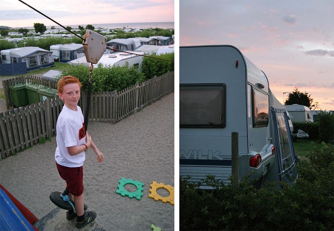 Vi kjente fort at her kom våre behov til å bli mer enn dekket. Plassen har en storslått utsikt mot Kattegat, en nydelig hvit, ren og langgrunn sandstrand maks 150 meter unna, i tillegg til basseng med sklie. Plassen har en svært innholdsrik kolonialbutikk, her skal det virkelig mye til for at du ikke finner det du leter etter... Og selvfølgelig har de ferske rundstykker hver dag, og "lun" leverpostei fra den lokale slakteren. Det er også en liten kafé her med god mat til en rimelig penge.