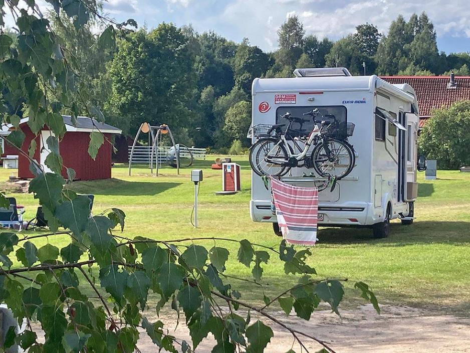Campingplassen tilbyr også moderne glamping i tre velutstyrte safaritelt, plassert i et rolig område langs Klarälven som flyter stille forbi.