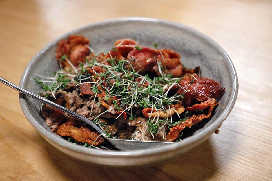 Anker har spesialisert seg på retter fra havet, og ligger rett ved det lokale fiskemottaket. De er gode på silderetter, som er en viktig del av en klassisk dansk julefrokost. Jeg synes den marinerte silden med karrisalat var et av høydepunktene på vår meny. Men det var bare en forsiktig første start på en rekke retter med mange spennende smaker: Kryddersilden var klassisk, og den gravede laksen av ypperste klasse. Å så få en panert flyndrefilet etterfulgt av egg og reker, forklarer sikkert at flere av oss begynte så smått å bli mette. Så kom kjøttet, først varm leverpostei og så en herlig ribbestek med tilbehør. Det var så vidt vi orket desserten, selv om riskremen var skikkelig god. Prisen på 379 DKK er meget fornuftig, for dette var en fest av et måltid. Vi klarte oss med brus og vann, men mange ville sikkert supplert måltidet med øl, vin og snaps, da koster tilsvarende meny 999 danske kroner.