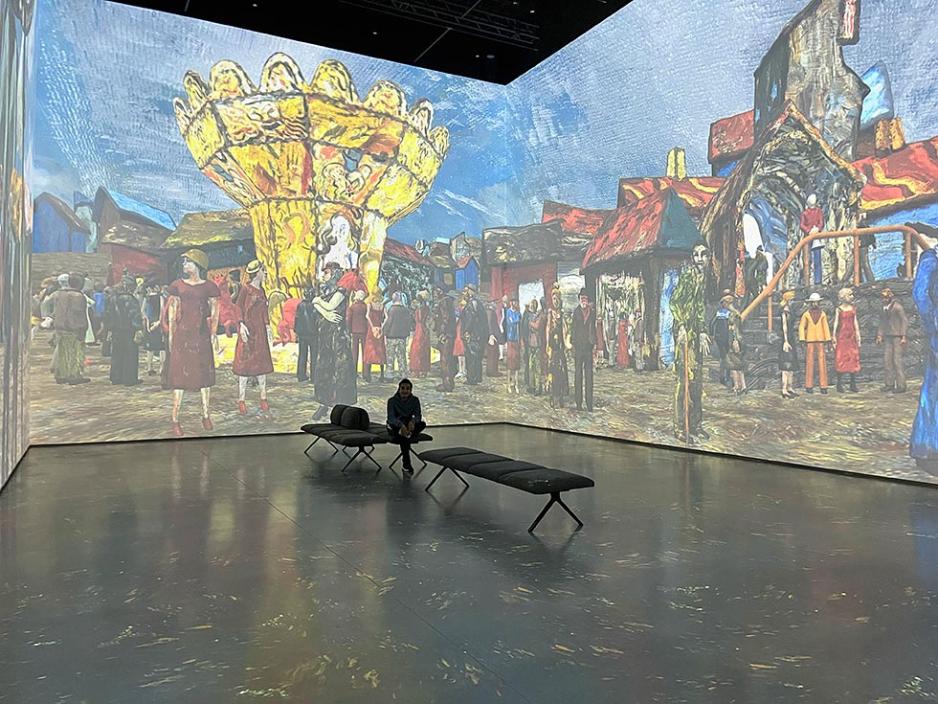 Vel inne i bygget fanget et rom kalt “Tivoli” virkelig vår oppmerksomhet. Prosjektet tar utgangspunkt i maleriet fra 1935 av Reidar Aulie, med samme navn. Alle personene på maleriet er skannet og det er laget bevegelige 3D-versjoner av alle. Teknologien og installasjonen med projeksjoner på alle vegger, ga oss virkelig en unik følelse av hvordan det må ha føltes å være en del av Oslos ikoniske gamle fornøyelsespark på denne tiden. De flimrende skjermene, lekne lydene og den nostalgiske atmosfæren fikk det til å føles som en reise tilbake i tid. Utenfor rommet henger det originale maleriet.