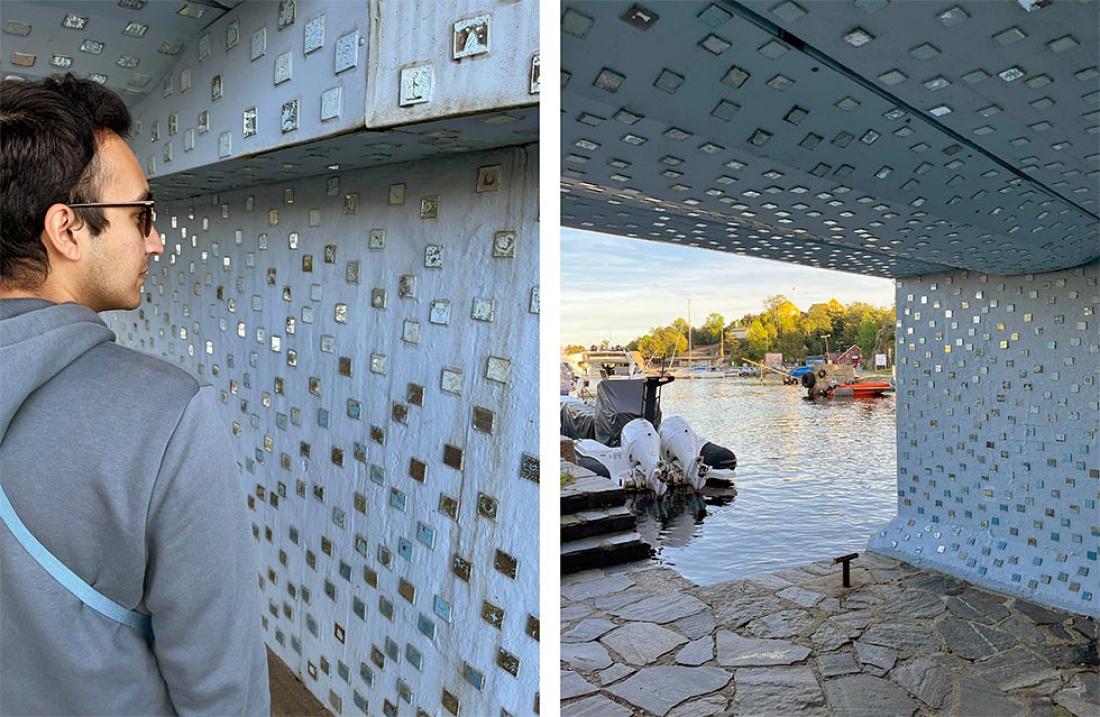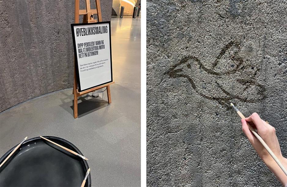 En av mine personlige favoritter var en installasjon hvor besøkende kunne legge igjen noe de hadde i lommene i en settekasse. Vi gravde i lommeboken og fant en t-bane billett fra Paris, som fikk bli igjen i Kunstsiloen som en del av denne levende utstillingen. I første etasje var det en vegg dedikert til besøkernes kunstverk, hvor vi kunne male med vannfarger. Det var enkelt, men fascinerende å kunne etterlate et midlertidig merke av vår kreativitet på siloens vegg.