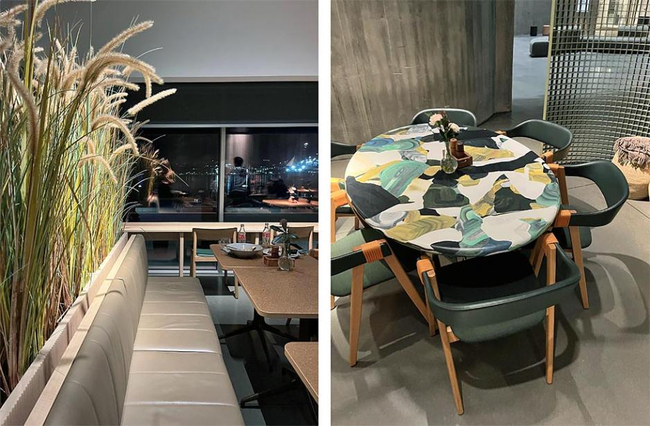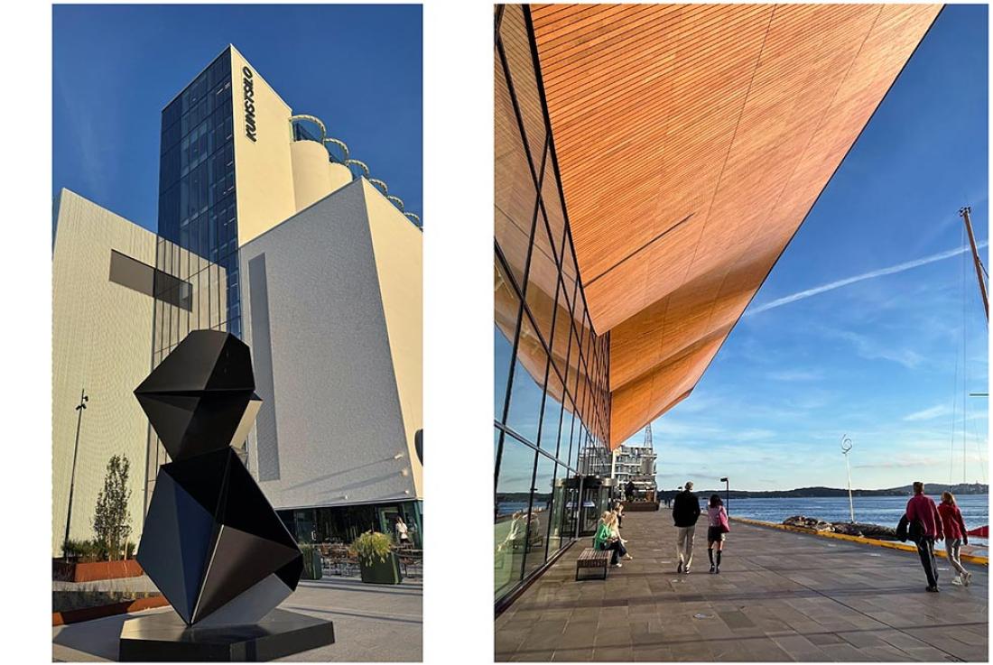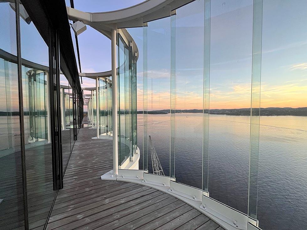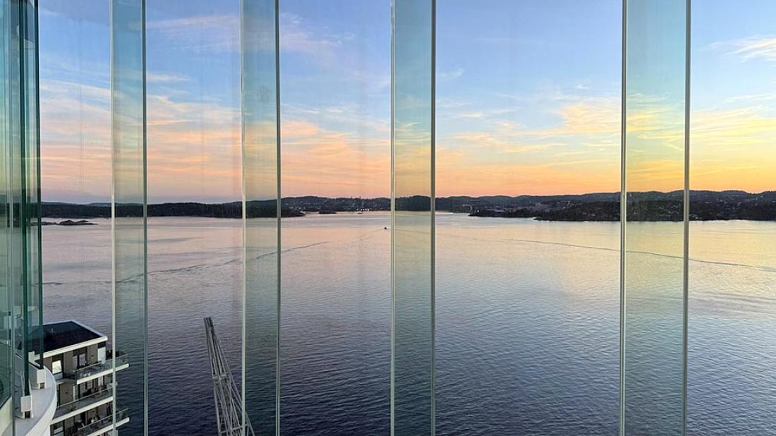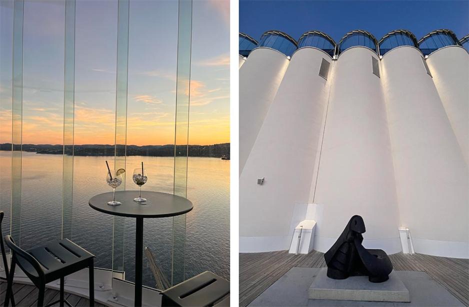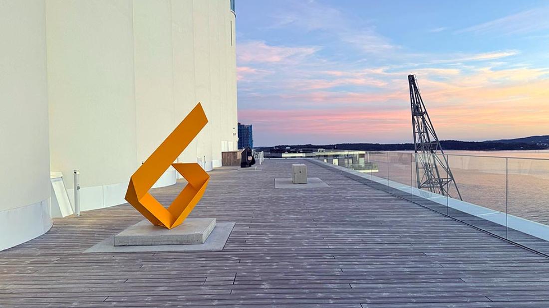 Neste høydepunkt var en utendørs installasjon kalt Kunst i Kuling på balkongen. Vi timet besøket perfekt til å få med oss solnedgangen utover havet. Fra øverste etasje får du en helt fantastisk panoramautsikt over Kristiansand. Det kan være en perfekt avslutning på besøket å ta inn over seg bylandskapet fra denne høyden. Her finnes det også en bar om man vil sitte ned og nyte utsikten med noe å drikke.