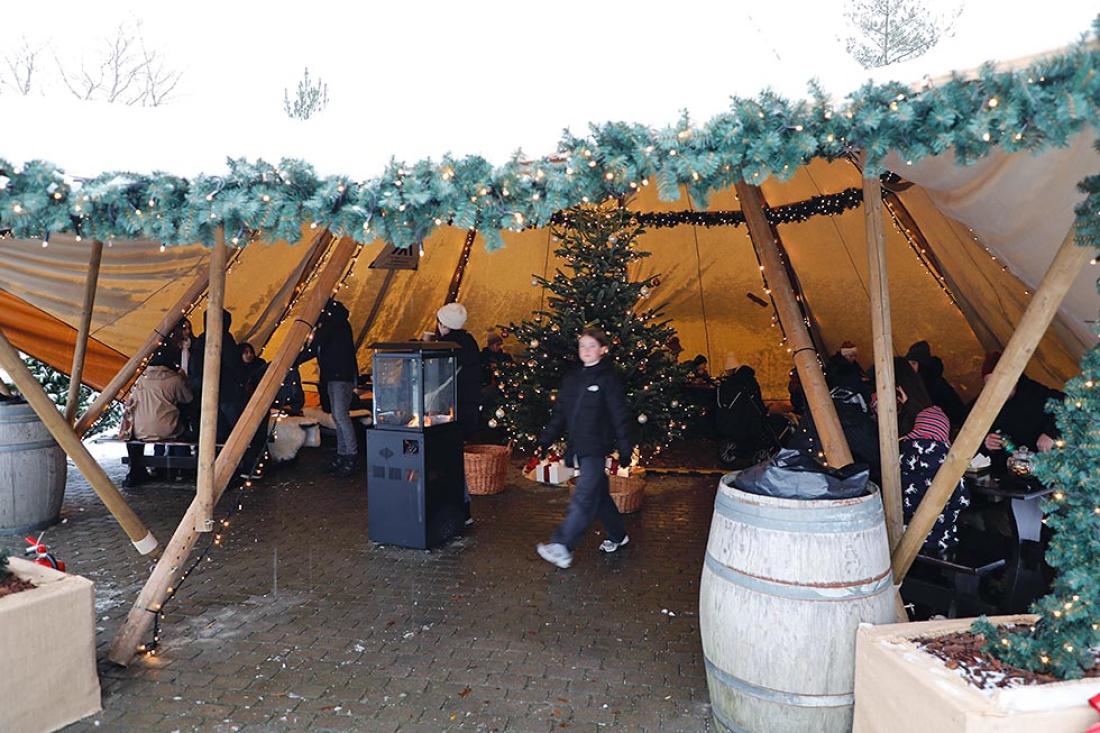 Det er virkelig stemningsfullt å bare gå rundt i den flotte parken. Litt eksotisk er det å se Lego-giraffene med snø på ryggen. Det er brukt store ressurser på å vinterpynte i parken. Hvor mange meter med lyslenker det har gått med bare til borgen, er umulig å gjette. Også små trivelige plasser som Princess Garden hadde fått lyslenker. I parken er det noen lavvoer som ikke bare var utstyrt med juletrær og lyslenker, her var også gløggservering og mye godt å spise. I tillegg var det mange boder hvor man kunne kjøpe seg Danske æbleskiver, eller Munker som vi gjerne kaller baksten i Norge. De kuleformede kakene lages i et spesialjern på en vaffellignende oppskrift og serveres med syltetøy, rømme eller krem. De skal selvsagt nytes ferske og varme.