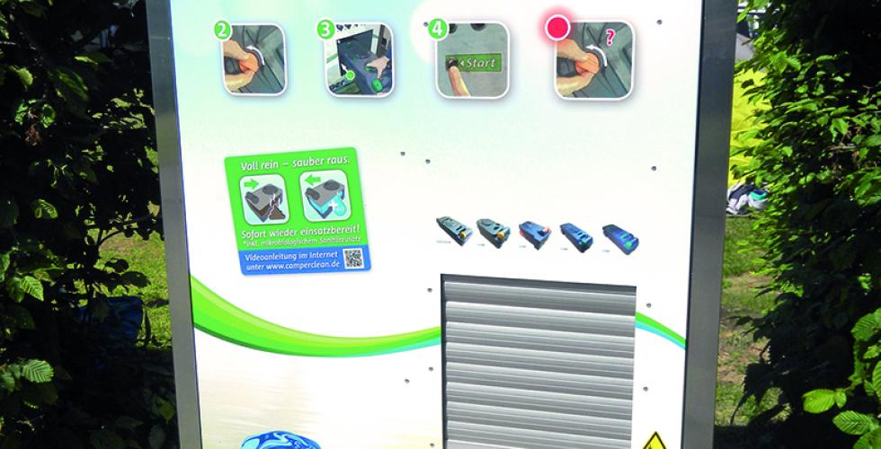 Produkt Camper-Clean For mange høres det forlokkende ut: Du tar ut den fulle toalettanken og plasserer den i rengjøringsautomaten. Få minutter etter kommer den ut, ferdig tømt, vasket og fylt med ny sanitærveske.