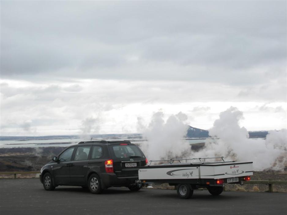 Kjører man med teltvogn, skal den hektes på bilen, og man skal sjekke kuletrykket. For stabilitetens og dermed sikkerhetens skyld er det viktig, at vogntoget er pakket korrekt.