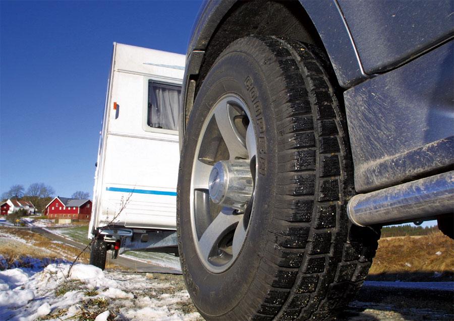 - Det anbefales å ha samme type dekk på bil og campingvogn, og i vintersesongen er vinterdekk et must. - For vinterdekk er minste tillatte mønsterdybde 3,0 mm. - Visste du forresten at et sommerdekk med minste tillatte mønsterdybde - 1,6 mm - presser 85 prosent mindre vann vekk enn et nytt dekk? - Unngå vanndammer for å minke risikoen for vannplaning, og tenk på å aktivere bremsene innimellom. Spesielt hvis du kjører i slaps, for å forvisse deg om at de fungerer effektivt når de behøves - Sommer som vinter skal bremsene kontrolleres. Sjekk, at håndbremsen kan holde vognen. - Gjenbruk i form av f.eks. brukte vinterdekk, ubrukelige isskraper, dårlige vindusviskere og oppripete ruter anbefales ikke. Sørg for at du har nytt utstyr før vinteren. - ESP, Electronic Stability Program er et verdifullt, sikkerhetsmessig hjelpemiddel, spesielt ved kjøring på glatt føre. Hvis bilen er i ferd med å miste festet aktiveres bremsene og motoreffekten reduseres, hvis det er nødvendig. Men kjør fortsatt forsiktig og vær oppmerksom på forholdene, selv om bilen din har ESP - ingen elektronikk i verden opphever naturlovene! - Kjør med tilstrekkelig avstand. Om vinteren er det viktig å holde enda lengere avstand til forankjørende bil pga. glatte veier. Bremselengden for en bil som kjører i 50 km/t er mer enn dobbelt så lang på iset veibane, enn når veibanen er tørr - Nøyaktig gir. Det riktige girvalg medfører at du noen ganger skal kjøre i et høyere gir. Ofte er det bedre med annet gir i stedet for første gir (eller til og med tredje gir) for å minske risikoen for hjulspinn når du starter eller akselererer på is eller snø. Har du automat gir, bruk da «Vinterforhold», hvis det finnes. Også et Traction Control System (TCS) hindrer hjulene fra å spinne. - Sladd på bilen får man lett på snø eller is, selv ved lave hastigheter. Ikke brems! Hvis du får sladd på forhjulene i en forhjulstrukket bil, trå inn clutchpedalen for å koble ut motoren (skift til «nøytral» hvis du har automatgir), og styr forhjulene i den retning du vil kjøre. Hvis du får sladd på bakhjulene, koble ut og styr mot sladden, altså i den retning som bilens bakdel beveger seg. Hvis du har ABS (låsningsfrie bremser), hjelper det med til å forhindre sladd i forbindelse med bremsing. Bremsepedalen vibrerer voldsomt, når ABS er aktivert, men slipp ikke, men fortsett med å bremse kraftig. Test funksjonen under sikre forhold, slik at du lærer hvordan ABS fungerer. - Tenk på at alle forutsetninger endres. Både reisetid og bremselengde bliver lengre. Det eneste, som blir kortere, er dagene.
