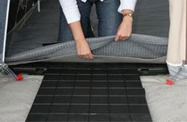 Bor man i campingvognen over lengre tid på samme sted, kan man med fordel legge gulv i forteltet. Gulvet kan legges i opp til fem lag.