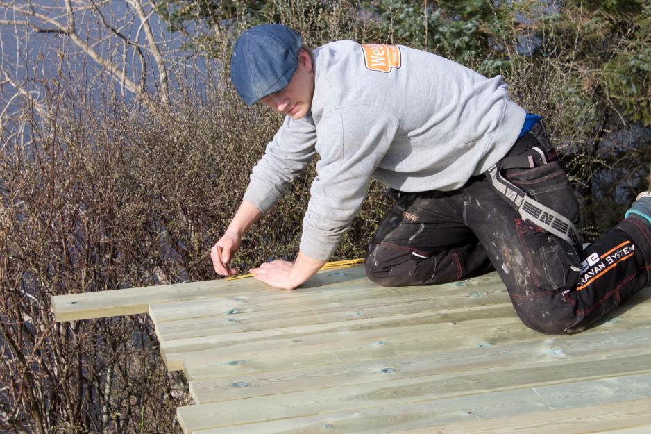 – Vi legger mange plattinger i sesongen og vet at dette er grei skuring når man først vet fremgangsmåten. Nøkkelen til suksess er å bygge etter underlaget, bruke riktige materialer og være nøyaktig under utmålingen, sier Staveland.