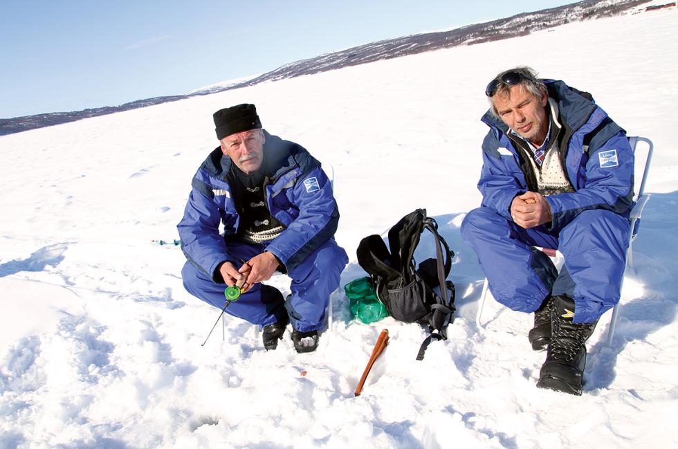 Per Inge Iversen (t.v.) er en ivrig fastligger på Stugudal camping og isfisker. Men under den store isfiskekonkurransen på Stuggusjøen sammen med kompisen Jon Håvard Hulmo, ble det ingen fangst.